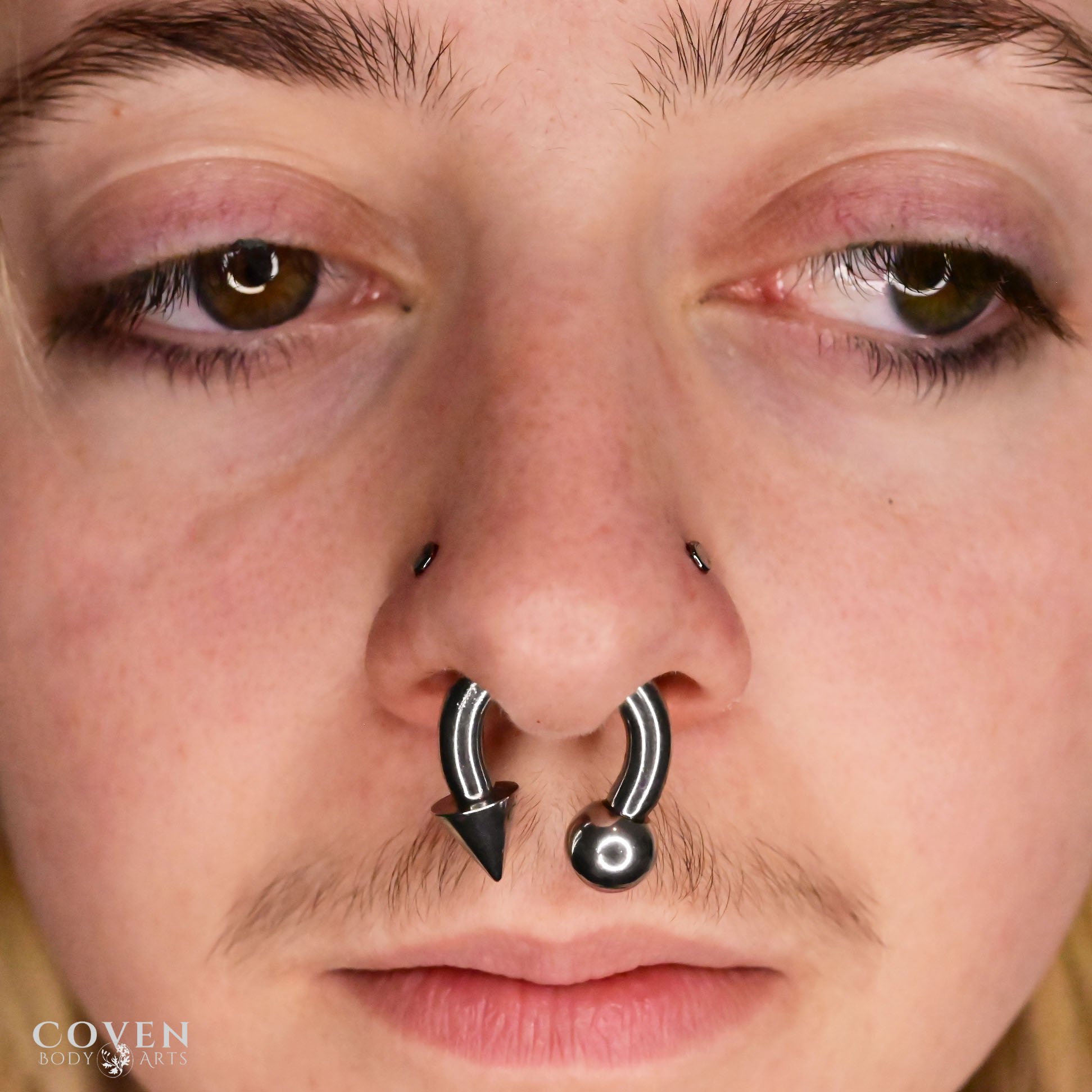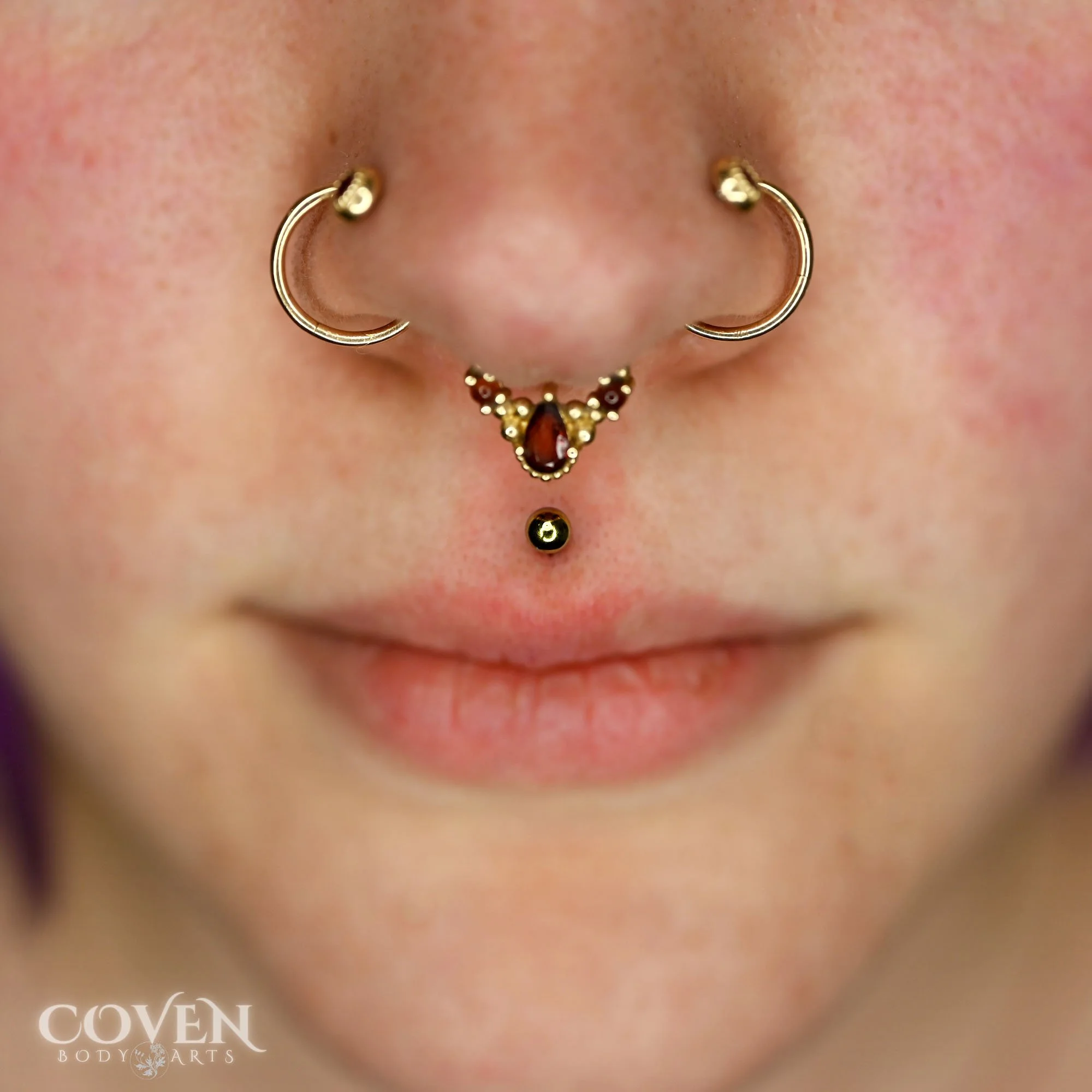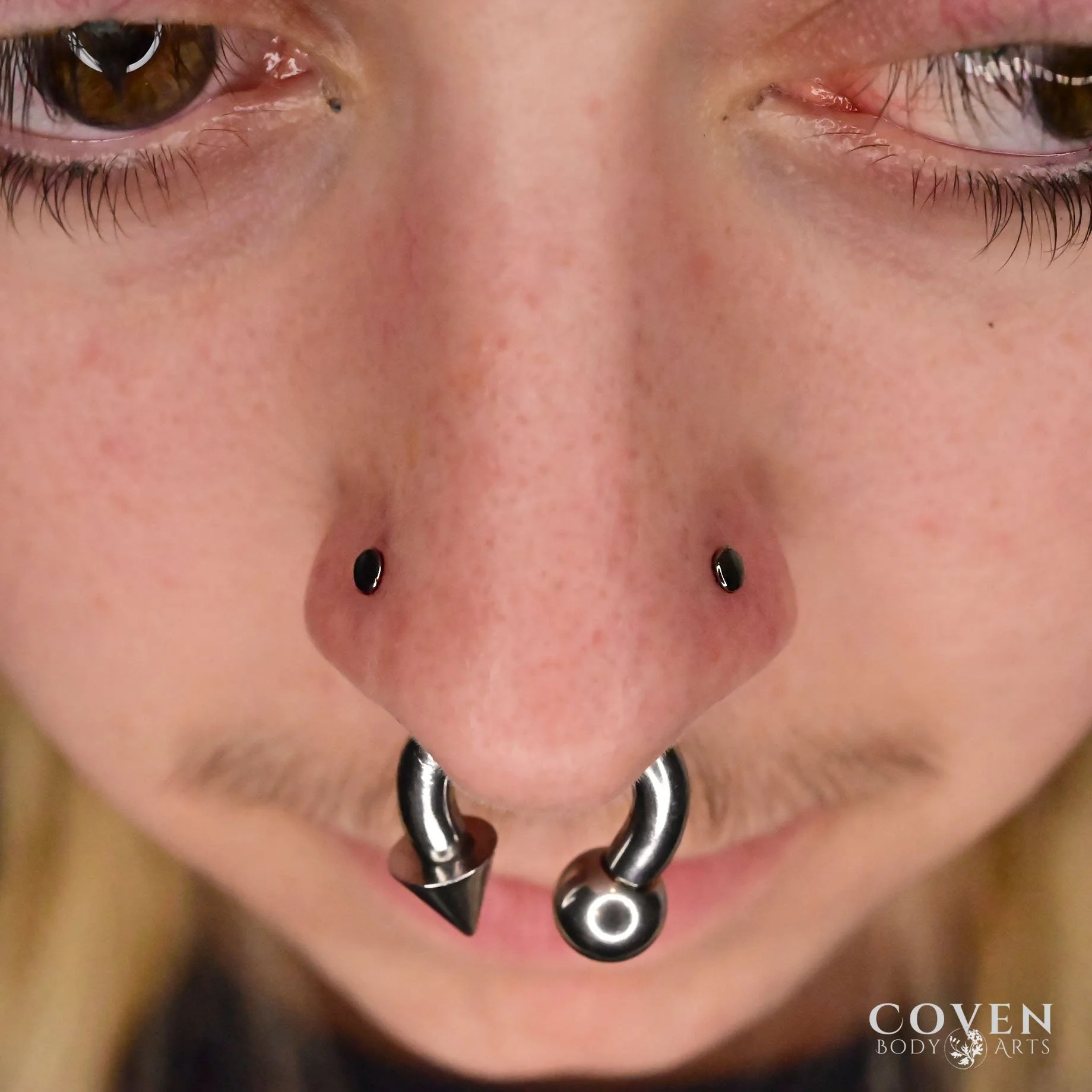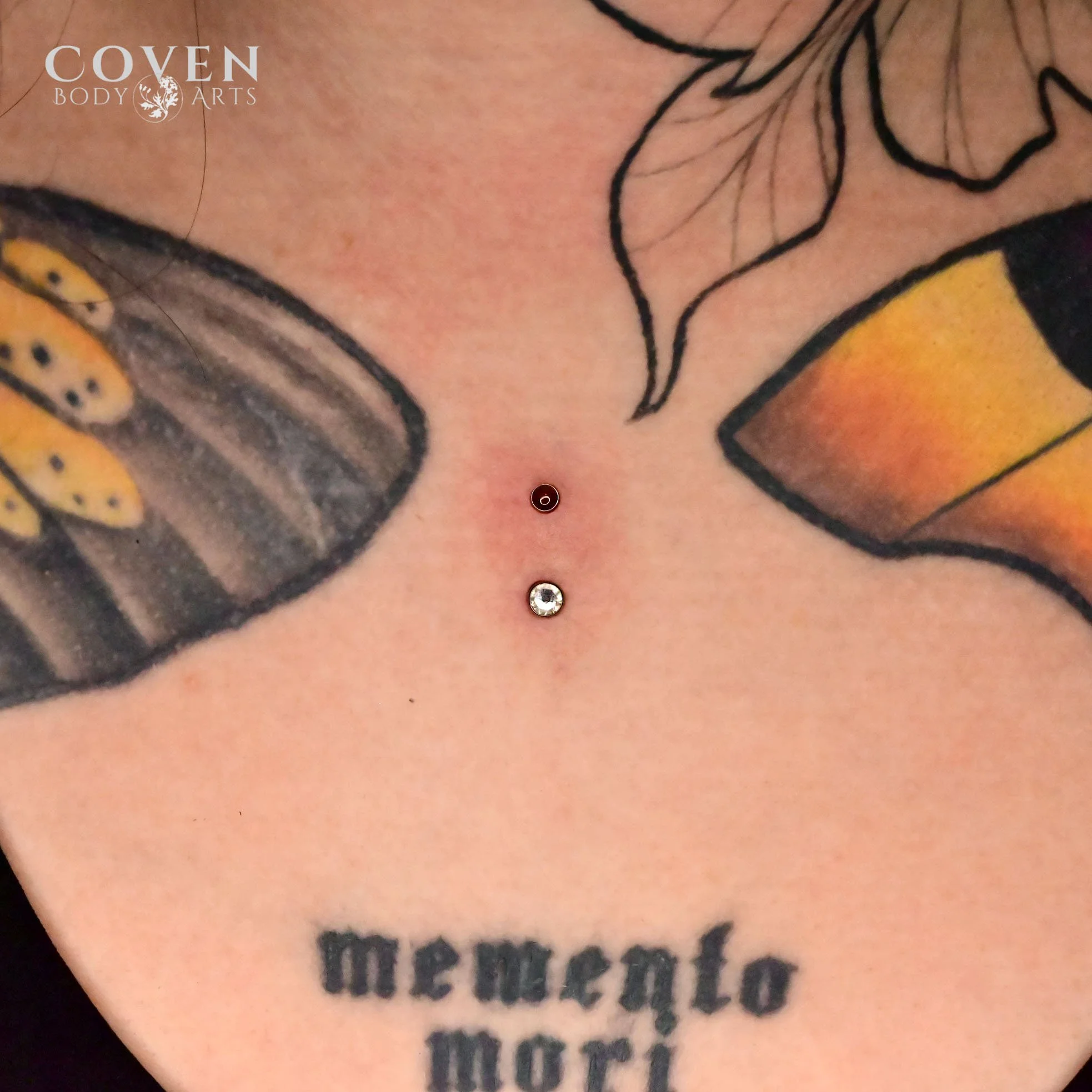 she is currently working on: industrials, monroe, philtrum, vertical labret, ashley, tongue, male nipple, Christina, VCH, frenum piercings