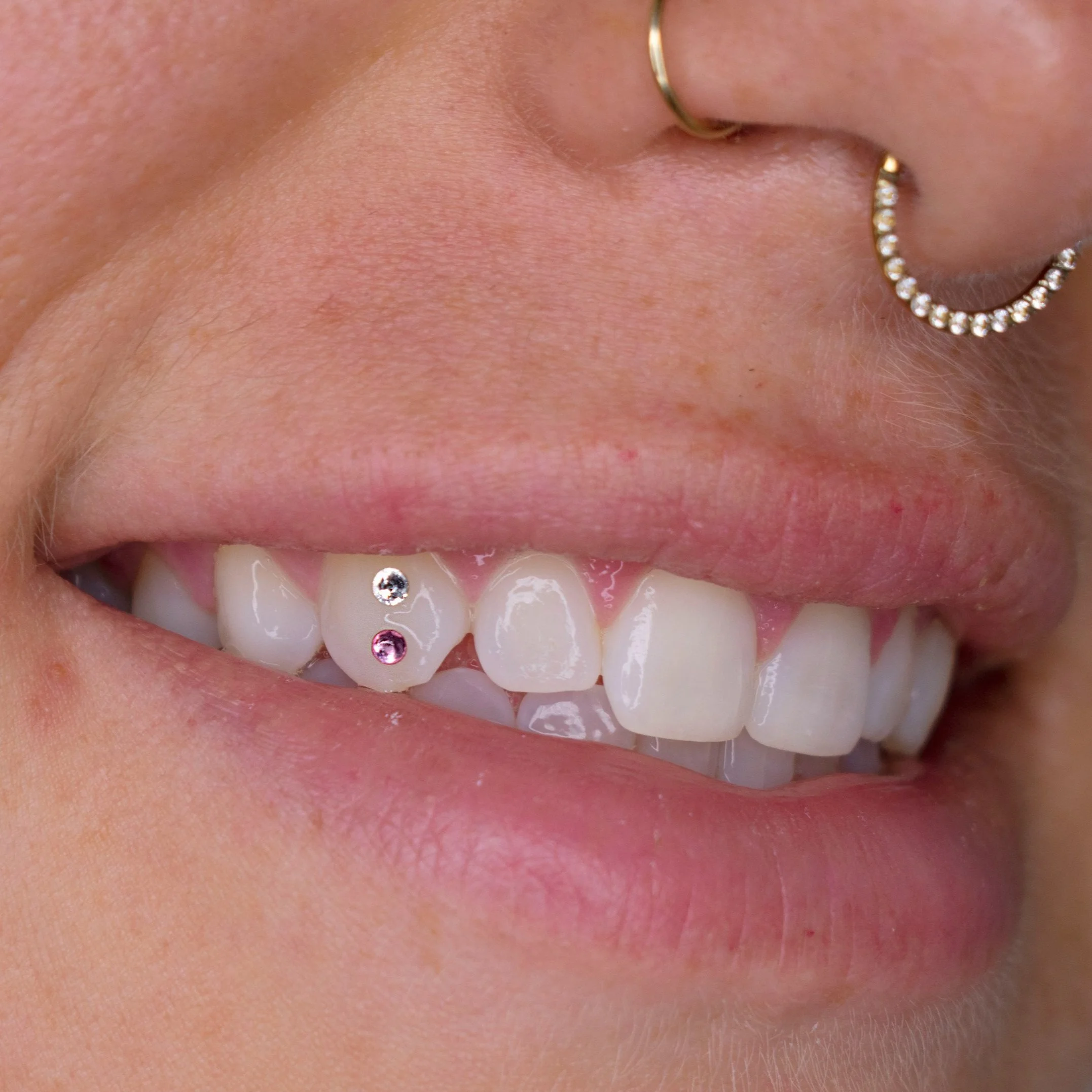 be sure to keep your teeth clean to avoid plaque buildup around the gem.